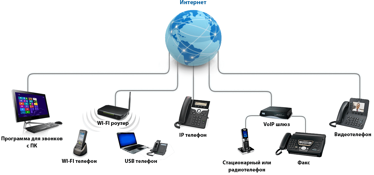 Вместо специальных телефонных проводов используется Интернет. Вместо дорогих и громоздких телефонных станций - серверы со специальным программным обеспечением. А в качестве оконечных устройств - IP-телефоны, которые с виду похожи на классические телефоны, но по функционалу сравнимы с мини компьютером. За последние десятилетия Интернет и компьютерная индустрия развились так сильно, что оставили далеко позади традиционные телефонные сети по возможностям, надежности и цене.